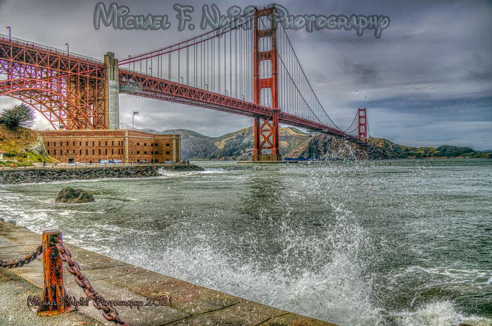 Golden Gate Bridge photographed below the Bay Trail NW of Chrissy Field on May 2, 2018.